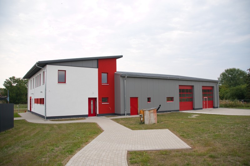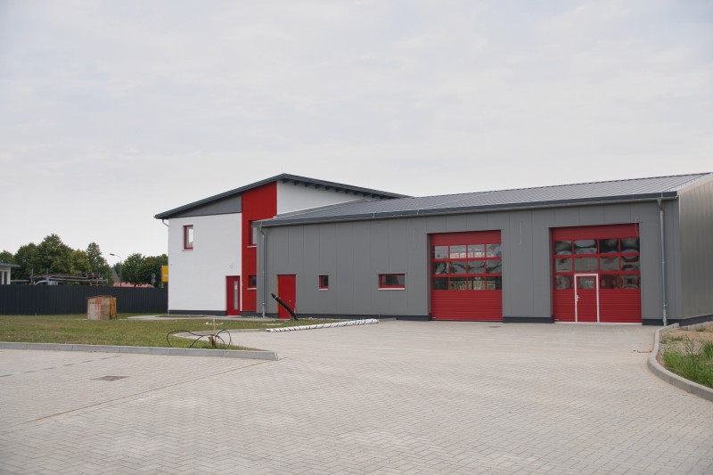 Die weiteren Tage verliefen wettertechnisch ohne Probleme, sodass der Bau stetig weiterlaufen konnte. Im Sozialgebäude konnten bereits auch schon alle roten Fenster verbaut werden. Am 06.03.2020 steht sogar das Richtfest mit allen beteiligten Vertretern der Stadt Wesenberg, des Landkreises, des Kreisfeuerwehrverbandes MSE, der Feuerwehren des Amtes Mecklenburgische Kleinseenplatte und der beteiligten Baufirmen auf dem Plan.