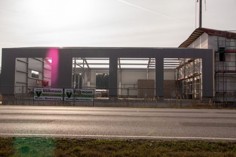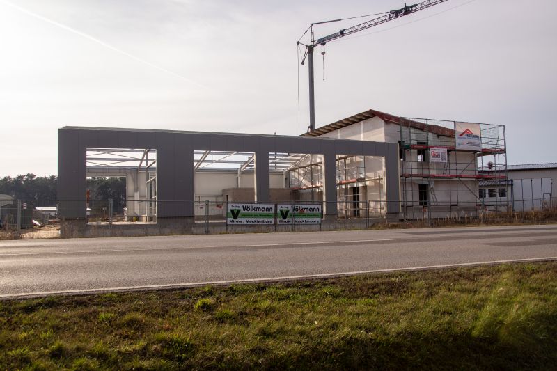 Der Bau der Fahrzeug- und Waschhalle schreitet immer weiter voran, parallel wird bereits auch am Dach des Gebäudes gearbeitet. Richtfest soll, wenn nichts dazwischen kommt, am 06. März 2020 statt finden.
