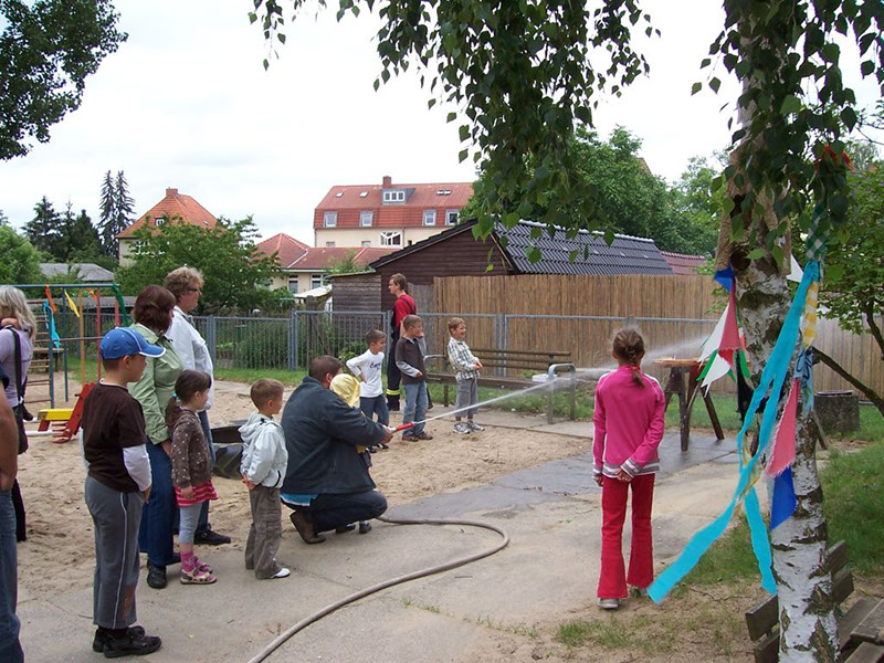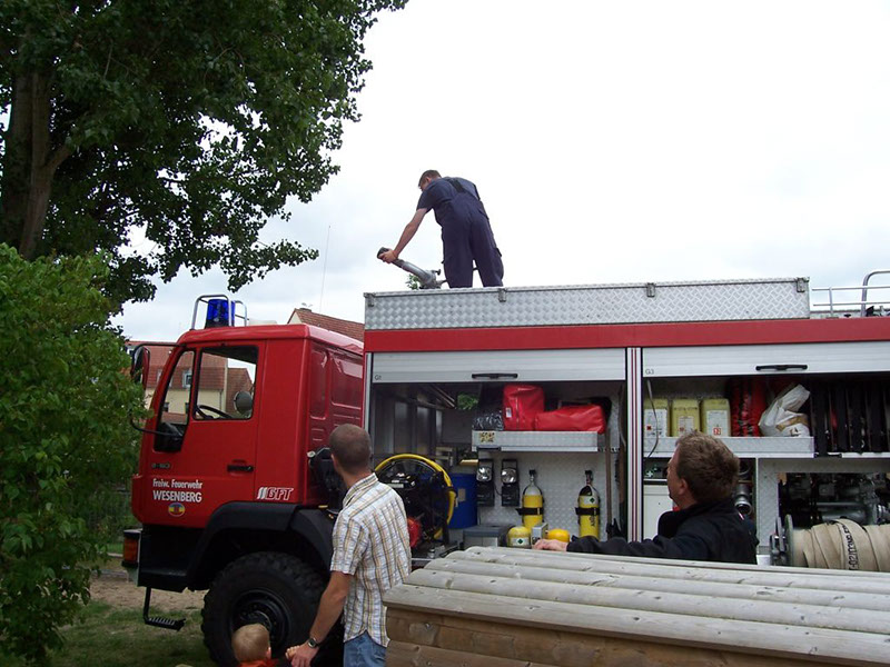 In unserer Wesenberger DRK-Kita "Spatzenhus" fand an diesem Tag ein sogenannter Blaulicht-Tag statt. Bei diesem Event versammelten sich die Organisationen von DRK, Feuerwehr und THW, um sich zu präsentieren, ihre Technik vorstellten und bei Vorführungen etwas zu zeigen! Natürlich waren auch wir mit unserer Technik dabei und nicht nur die Kleinen durften einmal vorne am Strahlrohr stehen!