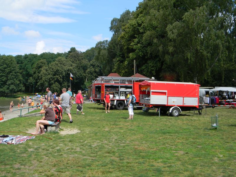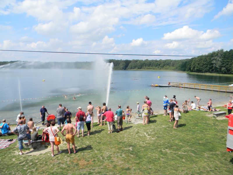 Zum ersten Mal durften wir beim Wesenberger Strandfest mit unserer Technik anwesend sein und Groß und Klein die Fahrzeuge präsentieren. Bei sehr heißen Temperaturen sorgten wir dann für die passende Abkühlung, zur Freunde aller Gäste. In zwei Vorführungen zeigten wir dann einmal was passiert, wenn Wasser auf brennendes Öl trifft und zum anderen wie man richtig mit einem Feuerlöscher umgeht. Bei bei einer gemeinsamen Übung mit der DRK-Wasserwacht demonstrierten wir eine Wasserrettung. Am Abend unterstützten wir beim Auf- und Abbau des Höhenfeuerwerkes auf dem Weißen See.