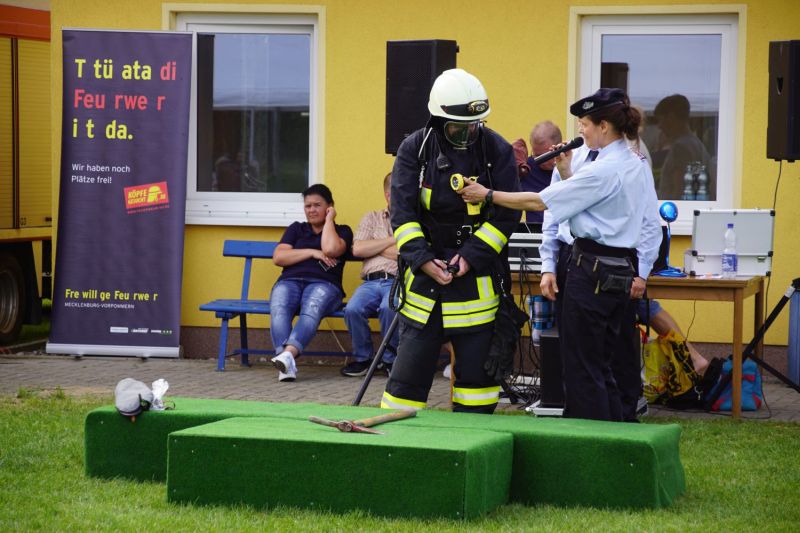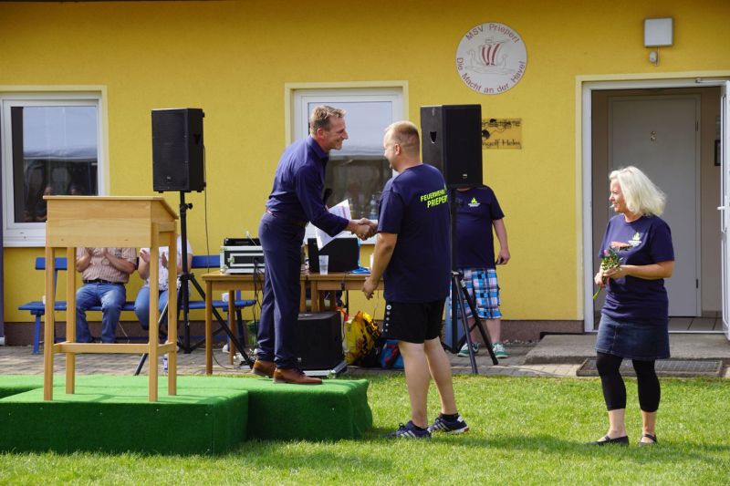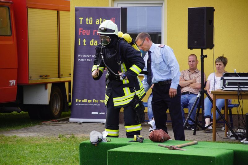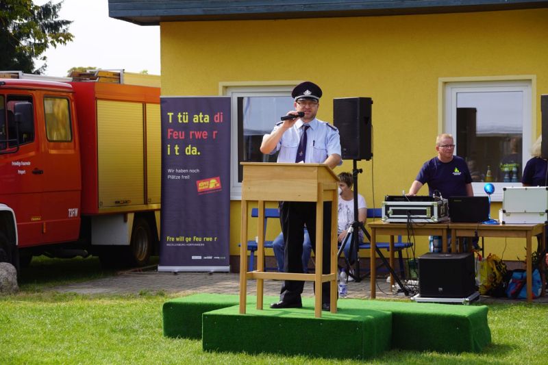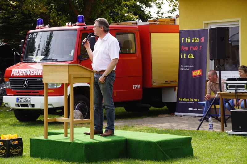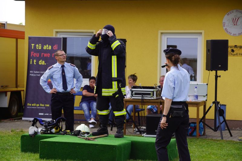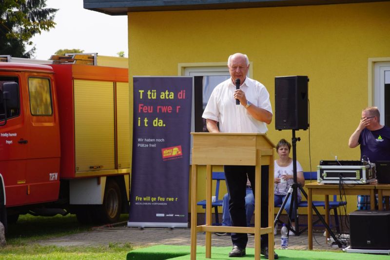 Ab dem Nachmittag ging es dann zusammen mit den Feuerwehren aus dem Amt Mecklenburgische Kleinseenplatte nach Priepert, wo die dortige Feuerwehr ihr 70-jähriges Gründungsfest feierten. Hierzu kamen nehmen einigen Bürgermeistern auch zahlreiche politische Vertreter, um ihre Glückwünsche zu überbringen.
