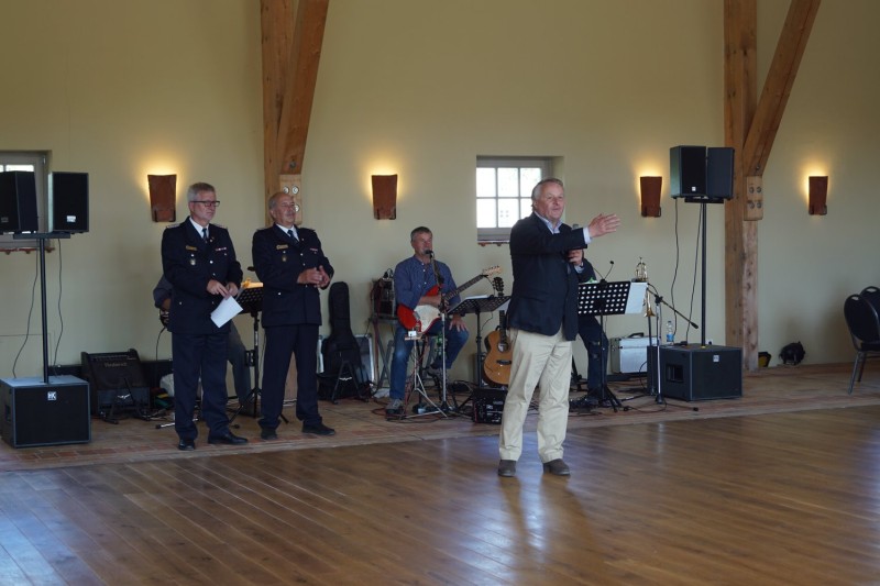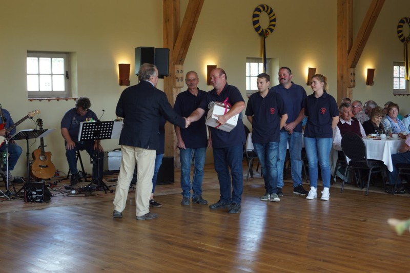 Eröffnet wurde die Feierstunde mit Kaffee und Kuchen durch Norbert Rieger, Kreisbrandmeister und Vorstandsvorsitzenden des KFV MSE, und den Inhaber Helmuth Freiherr v. Maltzahn, welcher sich ebenfalls nicht nur bei allen Ehrenamtler recht herzlich für ihr Engagement bedankte, vor allem ging sein Dank aber an die Kameraden /innen der Feuerwehr Zettermin für ihre jahrelange Unterstützung bei den Absicherungen der Feste auf dem Schloss & Gut Ulrichshusen. Für musikalische Unterhaltung sorgte die Band AKG und der Feuerwehrmusikzug Mirow e.V.. Ein Rundgang auf dem Gelände und eine Technikschau historischer Einsatzfahrzeuge standen ebenfalls auf dem Plan. Auch konnten wieder einige Auszeichnungen, wie z.B. für 70-jährige Mitgliedschaft in der Feuerwehr, vorgenommen werden. Nach einer warmen Erbsensuppe konnte nach und nach wieder die Heimreise beginnen.