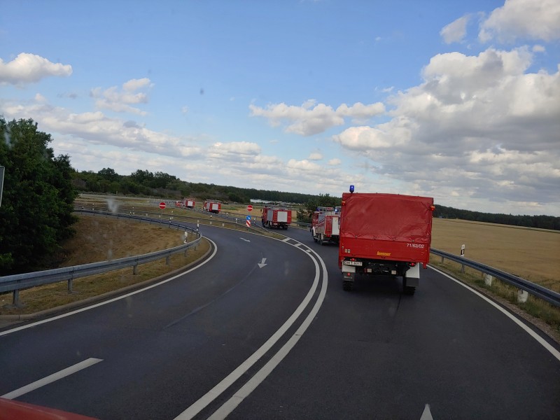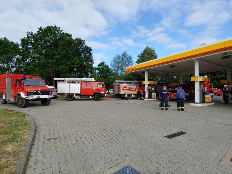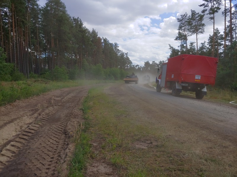 Am Nächsten Tag ging es wieder zur Sammelstelle bei der Feuerwehr Lübtheen. Nach einer Einsatzbesprechung rückte unser eigener gesamter Löschzug anschließend mit Obst und Getränke bepackt erneut nach Trebs aus, um auch hier die Einsatzkräfte abzulösen. An diesem Tag befassten wir uns mit 38 Einsatzkräften und 8 Einsatzfahrzeuge alleine mit der Löschwasserversorgung und dem Schutz der Ortschaft Trebs. Auch die Bundeswehr und Bundespolizei verstärkte mit ihren Hubschraubern die Waldbrandbekämpfung. Später rückten dann auch mehrere Bundeswehrpanzer und Wasserwerfer der Bundespolizei an. Gegen 17:00 Uhr wurden wir von neuen Kräften aus dem Landkreis Goslar abgelöst und wir konnten einige Zeit später unseren Heimweg antreten.