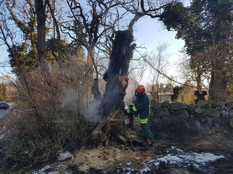 Erneut mussten wir heute in die Ortschaft Below eilen, weil dort ein Baum brannte. Wie sich auf Anfahrt heraus stellte, handelte es sich um den gleichen Baum. Dieser fing erneut an zu qualmen, wurden dann von uns noch einmal abgelöscht und im Anschluss gefällt, zerteilt und wieder kräftig abgelöscht.