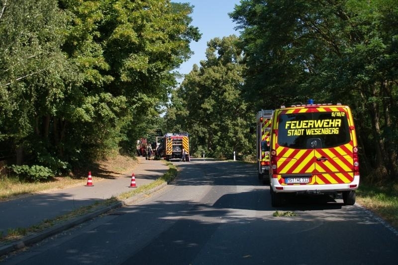 Heute Vormittag ereignete sich auf der Landstraße 25 am Ortseingang Useriner Mühle aus Userin kommend ein schwerer Verkehrsunfall mit einem Transporter bei dem eine Person verletzt wurde und aus dem Fahrzeug befreit werden musste. Wir übernahmen den Abschnitt technische Rettung und öffneten hierfür die Frontscheibe. Mit im Einsatz waren auch die Freiwillige Feuerwehren Userin, Neustrelitz, die FFw-Führungsgruppe Neustrelitz-Land, DRK-Rettungsdienst, Notarzt, Rettungshubschrauber Christoph 48 und Polizeikräfte.