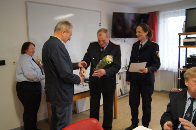 Zusammen mit Wesenbergs Bürgermeister Kamerad Helmut Hamp verabschiedeten sie Norbert Junge und bedankten sich für seine jahrelange Arbeit als Wehrführer.