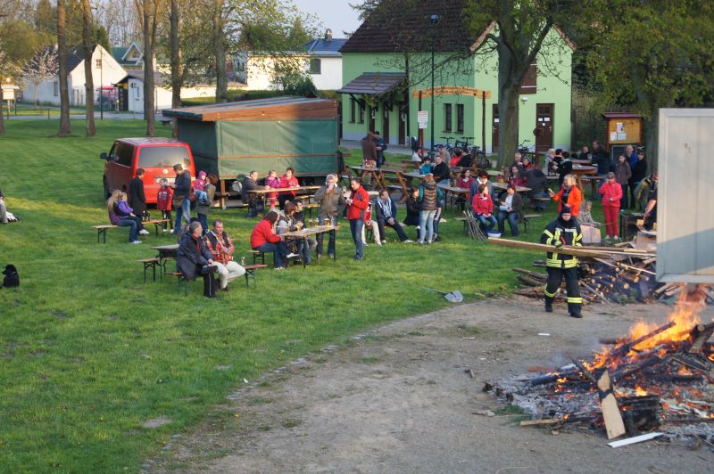 Nach vielem Hin und Her fiel dann doch unsere Entscheidung auf eine gemeinsame Kooperation mit dem Biergarten "Am Hafen"! Hier gibt es, unterhalb der Burg gelegen, genügend Platz und Sitzmöglichkeiten für die zahlreichen Gäste aus Nah und Fern. Bereits am Nachmittag wurde den Besuchern ein bunter Flohmarkt geboten, wo jeder etwas Neues und Antikes finden konnte. Ab 18:00 Uhr wurde dann unser traditionelles Osterfeuer entfacht und die ersten Bratwürste vom Grill an den/die Mann/Frau gebracht. Aber leider mussten wir rasch feststellen, dass unser Vorrat an Bratwürste nicht ausreichen würde und es musste für raschen Nachschub gesorgt werden. Auch der Bierstand vom Biergarten war rasch mit Gästen überfüllt, sodass auch wir uns endschieden, einen eigenen Bierstand zu öffnen. Gott sei Dank spielte auch hier wieder die Gaststätte Bodinka mit und stellte uns auf der Schnelle alles zur Verfügung. Neben Live-Musik der Gruppe „Collec Tiv“ konnte der Abend bei schönstem Wetter am Lagerfeuer genossen werden!