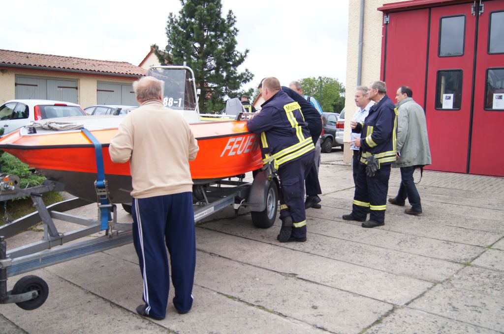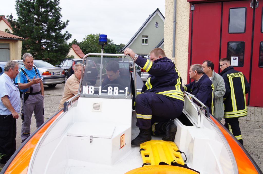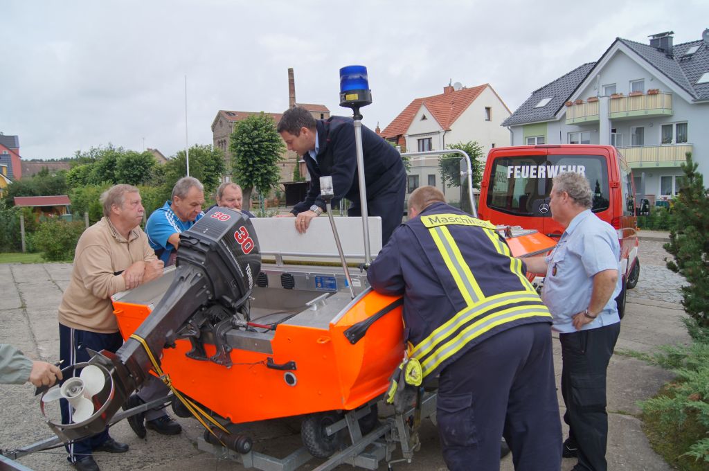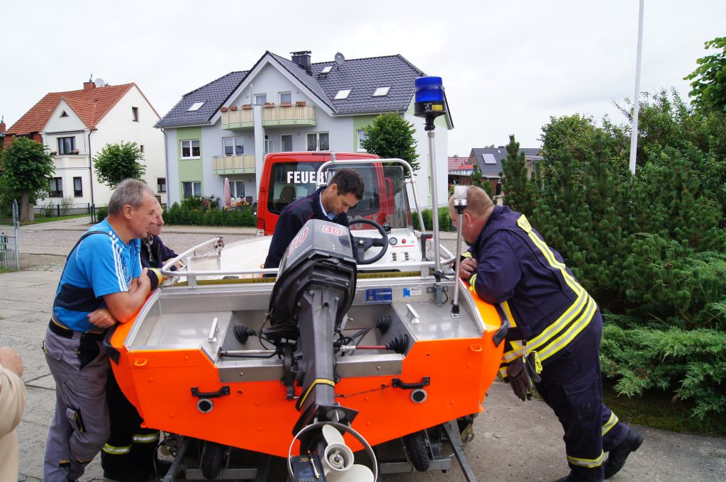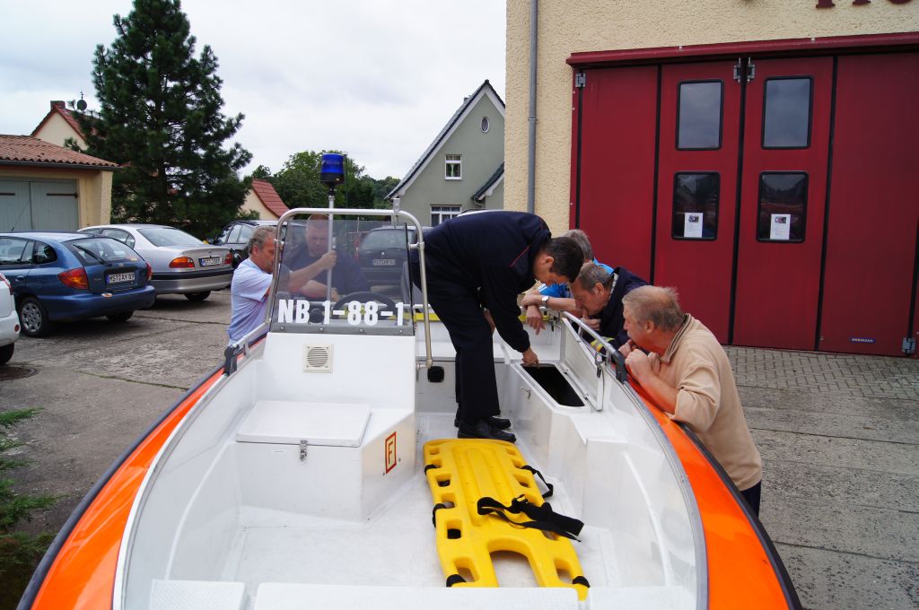 Der heutige Freitagvormittag des 20. Juli 2012 war für den Wesenberger Wehrführer Norbert Junge, sowie einiger seiner Kameraden wie Ostern und Weihnachten an einem Tag. Im zusammen sein mit Wesenbergs Bürgermeister Helmut Hamp wurde ihnen ihr neues, aber gebrauchtes Mehrzweckboot der Berufsfeuerwehr Neubrandenburg übergeben.