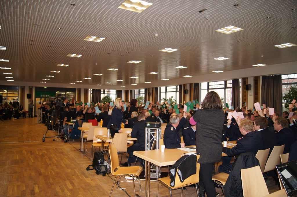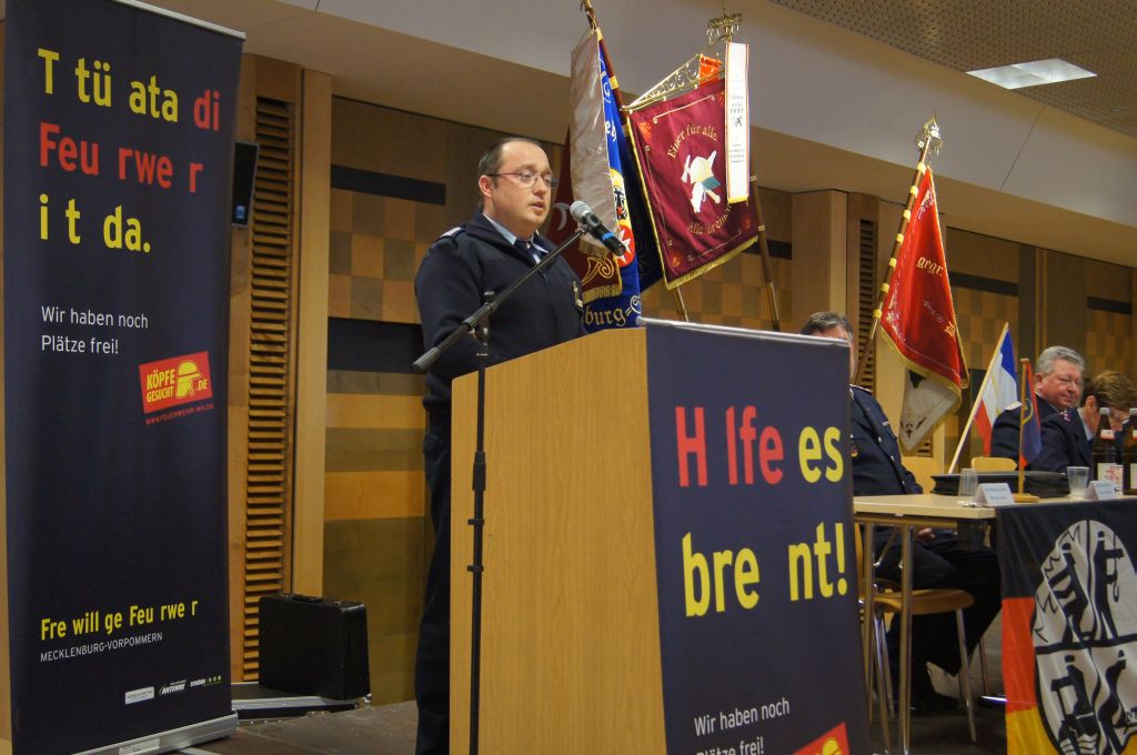 Seit dem 28.01.2012 ist die neue Struktur der Feuerwehren im Landkreis Mecklenburgische Seenplatte komplett. Nach der Wahl der neuen Kreisjugendfeuerwehr, die Ende Januar im Seehotel Ecktannen in Waren stattfanden, fand nun am besagten Sonnabend die Delegiertenkonferenz in der Neubrandenburger Hochschule statt. Hierzu kamen 298 Delegierte aus den Altkreisen Mecklenburg-Strelitz, Demmin und Müritz, sowie der Stadt Neubrandenburg zusammen, um über den neuen Kreisfeuerwehrverband Mecklenburgische Seenplatte und den neuen Vorstand abzustimmen, hierfür war eine Zweidrittelmehrheit von 213 Stimmen ausreichend. Jedoch musste schon zu Beginn die Versammlung, durch den Versammlungsleiter Josef Augustin, für einen kurzen Moment unterbrochen werden, denn die genaue Stimmenanzahl stand hier an oberster Stelle und musste genau geprüft und gezählt werden.