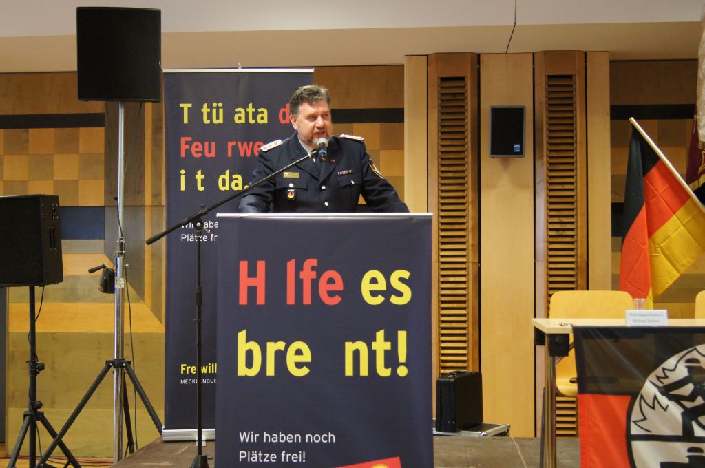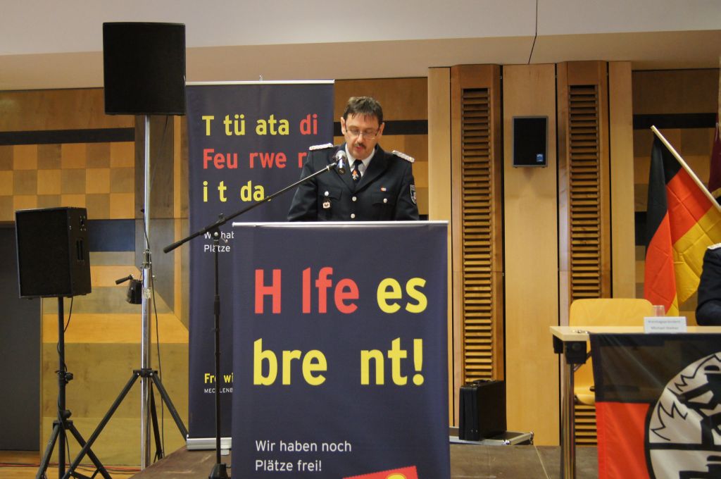 Hinterher gab es dann noch einige Aussprachen zur neuen Feuerwehrtechnischen Zentrale, die zurzeit im Aus- und Fortbildungszentrum Neuendorf (bei Neubrandenburg) ausgebaut und erweitert wird. Hier thematisierte der Malchower Amtswehrführer Jens Werner, der auch Lehrer an der Malchower Feuerwehrschule ist, den offenen Brief an den Landrat Heiko Kärger (CDU). In diesem Brief bemängelte er die zu weite Entfernung und die damit entstehenden Zusatzkosten, die den kleineren Wehren zusätzlich aufgetragen werden, nur um mal einige Schläuche zu tauschen. Jedoch baut er auf die Zusicherung von Heiko Kärger, dass das regionale Prinzip erhalten bleiben soll. „Schlauchwartung und –tausch müssen vor Ort erfolgen, ebenso die Schulungen und die Freizeitgestaltung der Jugendlichen“, so Kärger.