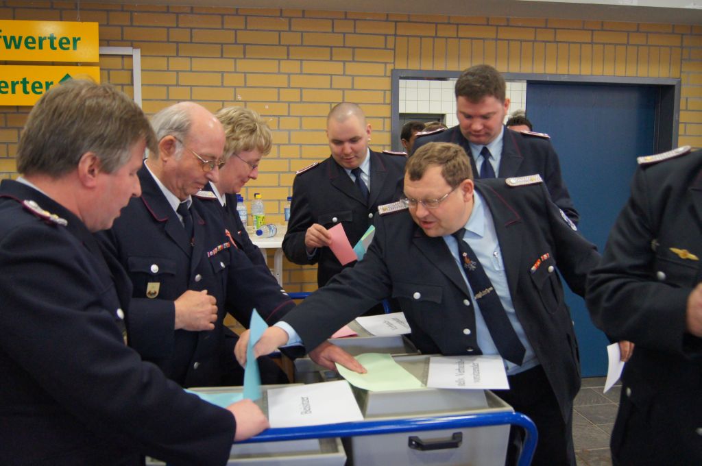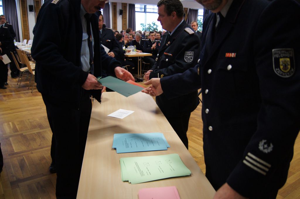 Der Größte Zeitaufwand beinhaltete jedoch die Wahl des neuen Kreiswehrführers, sowie der 3 Stellvertreter und 6 Beisitzer, die sich den Delegierten in einer kurzen Vorstellungszeit (max. 5 Minuten) präsentierten. Auch hier stand die Glocke in greifbarer Nähe, musste aber nicht eingesetzt werden. Als Kandidat des neuen Kreiswehrführers stand nur der Kamerad Norbert Rieger aus Woggersin zur Wahl. In der Mittagspause plus weiteren 60 Minuten Verzögerung fand dann die Auszählung ein Erfolgreiches Ende und so konnten gleich beim ersten Wahlgang der neue Kreiswehrführer Norbert Rieger, mit 96,9 % der Stimmen, samt Stellvertreter und Beisitzer bestätigt werden.