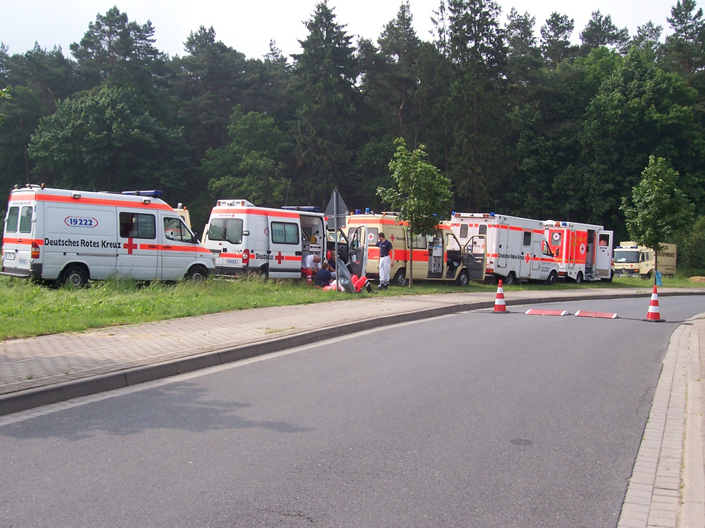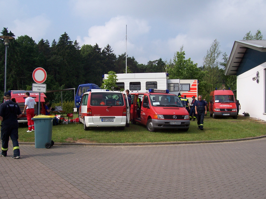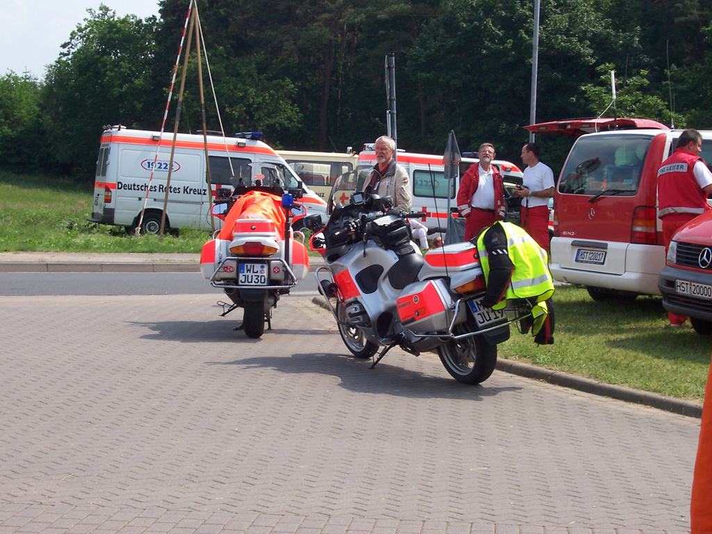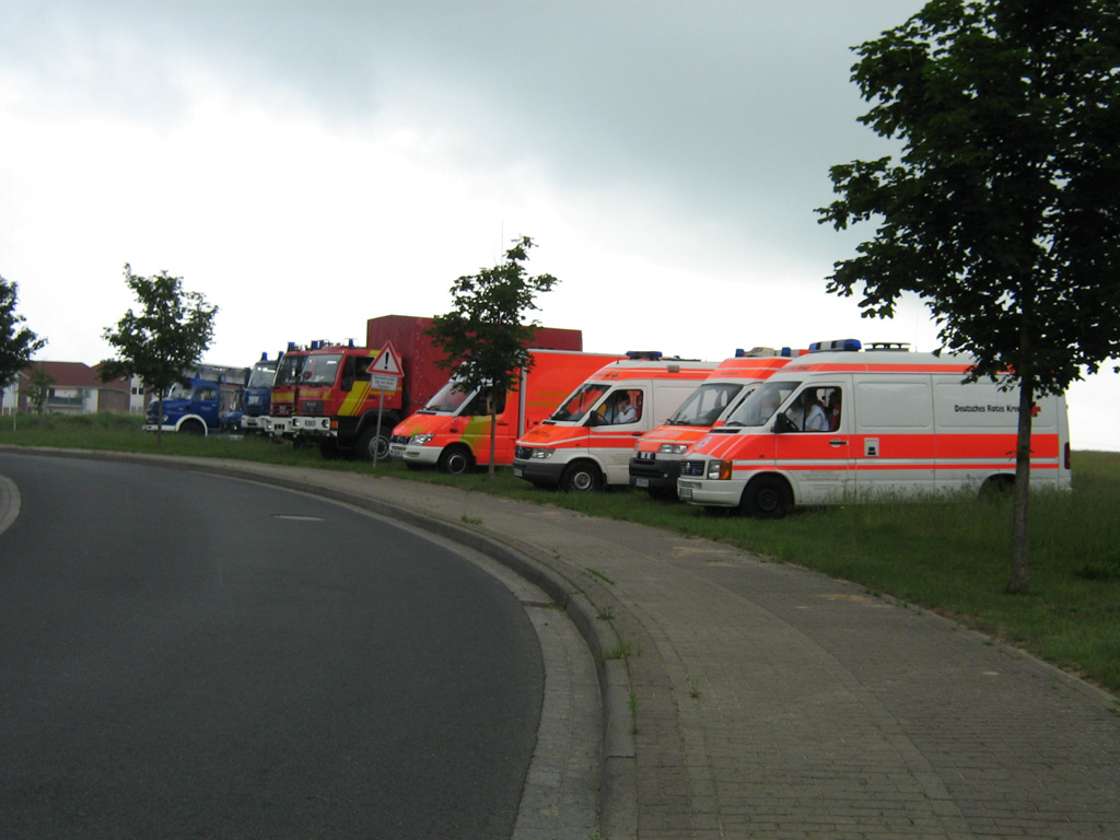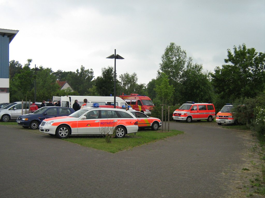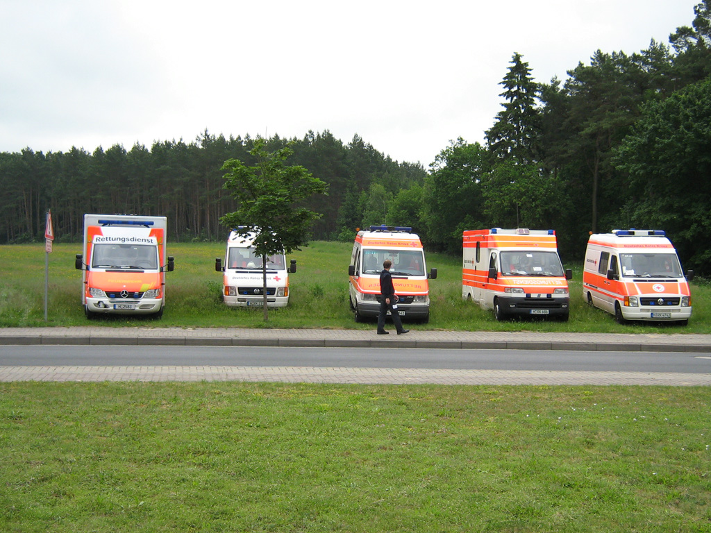 Am 01.06. traf sich die komplette Gruppe (15 Kameraden aus dem Landkreis Mecklenburg-Strelitz) auf dem Parkplatz des Landratsamtes Mecklenburg-Strelitz in Neustrelitz um an einer Verabschiedung teilzunehmen. Leider konnten wir nicht alle zusammen in einer Gruppe bleiben. Die erste Gruppe (12 Kameraden) machte sich schon am 01.06.07 mit 2 Fahrzeugen auf den Weg nach Rostock, sie waren am Stadthafen untergebracht (in Zelte!). Ihre Aufgabe war der ABC-Einsatz (Abwehr und Bekämpfung von atomaren, biologischen und chemischen Stoffen), wozu es aber glücklicherweise nie kam und sie ihr Leben nie riskieren brauchten. Jedoch mussten sie zu drei anderen Einsätzen fahren (u.a. Ölspur beseitigen, Containerbrand).