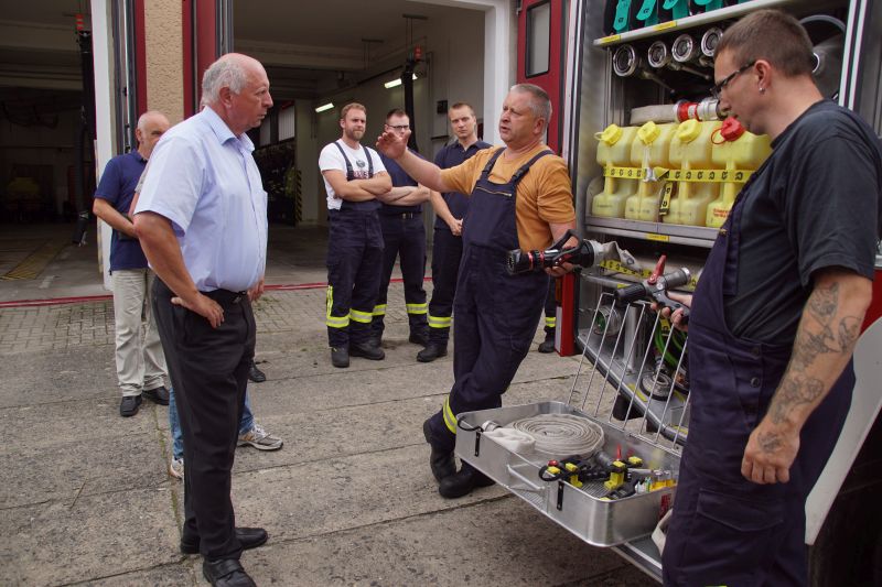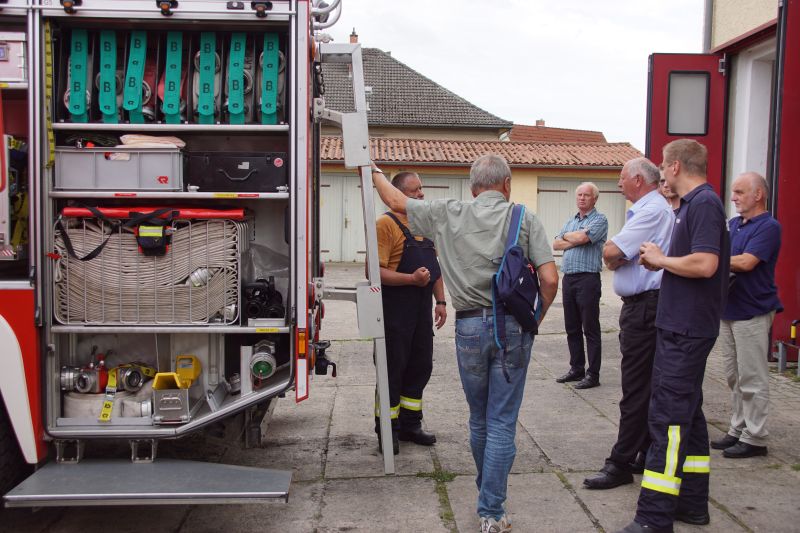 Im Anschluss stand dann der Besuch bei der Wesenberger Feuerwehr auf seinem Tour-Plan, um sich auch hier über die Arbeit und vorhandenen Probleme zu informieren. Besitzt die Feuerwehr der Woblitzstadt zwar den Status „Stützpunktfeuerwehr“, da aber die meisten Einsatzkräfte außerhalb arbeiten, muss auch sie tagsüber mit dem knappen Personal auskommen. Jedoch konnte Wehrführer Martin Gohlke gegenüber dem Bundestagsabgeordneten voller Stolz berichten, dass bei Einsätzen die Fahrzeugtore noch nie verschlossen blieben! Auch der in Arbeit befindliche Brandschutzbedarfsplan wurde ebenso ausführlich besprochen, wie der dringend benötigte Neubau des Feuerwehrgerätehauses.