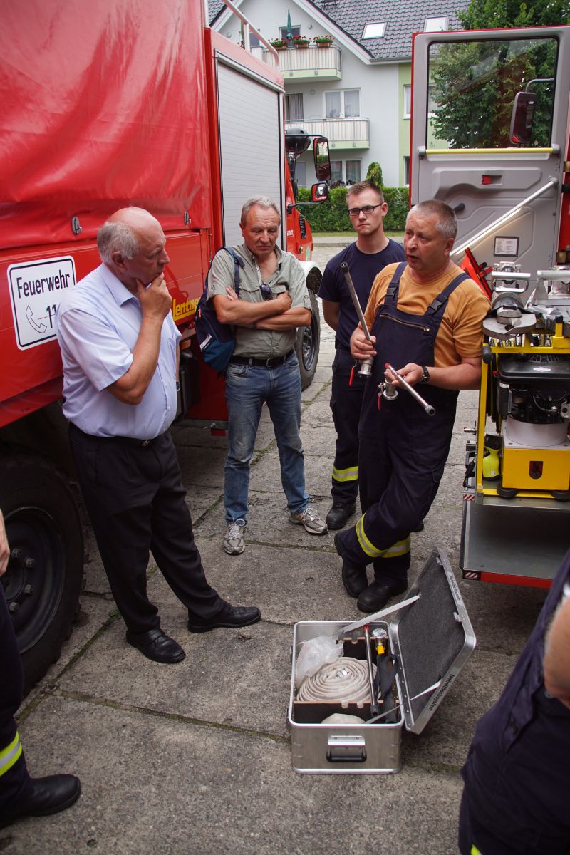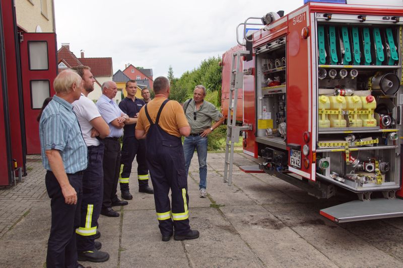 Bei einer Fahrzeug- und Technikschau konnte sich Herr Rehberg vom Wehrführer Martin Gohlke die zum Teil neu angeschafften Ausrüstungsgegenstände zeigen und vor allem auch erklären lassen, warum die teuren Anschaffungen für die zukünftige Brandbekämpfung und die Technische Hilfeleistung so wichtig war. Denn speziell in der Brandbekämpfung möchte die Feuerwehr Wesenberg in Zukunft auf wassersparende Löschtechnik setzen, um mit dem vorhandenen Personal und knappem Löschwasservorrat effektiv arbeiten zu können.