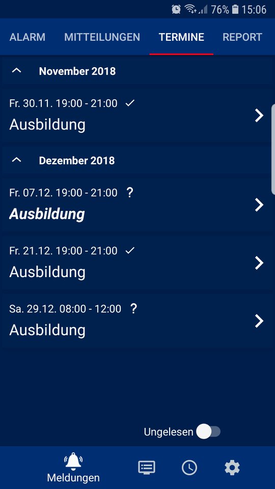 Auf der Freitagsausbildung am 16.11.2018 unserer Einsatzkräfte konnte das neue Alarmierungs- und Verfügbarkeitssystem Divera 24/7, welches sich bereits seit Ende August bei der Feuerwehr in der Probephase befand, nun offiziell in Dienst gestellt werden. In dieser Zeit konnten somit auch kleinere "Schönheitsfehler" und Ausbesserungen in den Konfigurationen vorgenommen werden. Zur Nutzung von Divera 24/7 wird eine Handy-App mit personenbezogenen Zugangsdaten benötigt.
