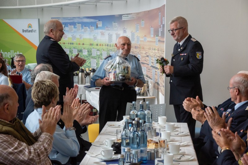 Stefan Florev vom Feuerwehrmusikzug Mirow erhielt vom Kreisfeuerwehrverband zu seinem 85. Geburtstag ein Präsent und Blumen überreicht. Auf der diesjährigen Festveranstaltung konnte an elf anwesenden Kameraden*innen für 50 Jahre Mitgliedschaft in der Feuerwehr und ein Kamerad für 60 Jahre Mitgliedschaft in der Feuerwehr das Ehrenzeichen am Bande des Landesfeuerwehrverbandes M-V verliehen werden.